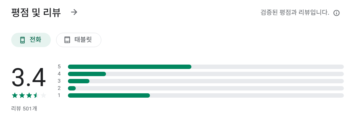 • 평점: 사용자 평점이 약 3.4점으로 다양한 평가가 존재합니다.
